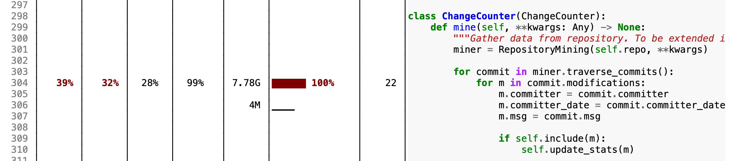 Let us illustrate profiling in a simple example. The ChangeCounter class (which we will encounter in the chapter on mining version histories) reads in a version history from a git repository. Yet, it takes more than a minute to read in the debugging book change history: